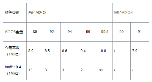 氧化鋁陶瓷通過氧化鋁純度進行分類,氧化鋁純度為>99%被稱為剛玉瓷,氧化鋁純度為99%、95%和90%左右被稱為99瓷、95瓷和90瓷,含量> 85%的氧化鋁陶瓷一般稱為高鋁瓷。黑色氧化鋁陶瓷基板多用于半導體集成電路及電子產品中,這主要是由于大部分電子產品具有高光敏性,需要封裝材料具有較強的遮光性,才能夠保障數碼顯示的清晰度,因此,多采用黑色氧化鋁陶瓷基板進行封裝。氧化鋁相關性能數據如圖:
