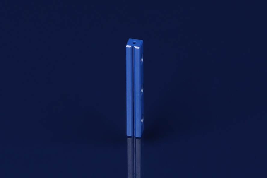 氧化鋯光纖V槽通常通過精密機械加工或激光雕刻在氧化鋯陶瓷基片上制成。其典型結構為一個V形槽,用于固定和對準光纖。氧化鋯的高硬度和高溫穩定性使其在制造過程中能夠保持高精度和低缺陷率。通過微米級的加工技術,可以獲得高質量的V槽結構,確保光纖在槽內的精確定位。