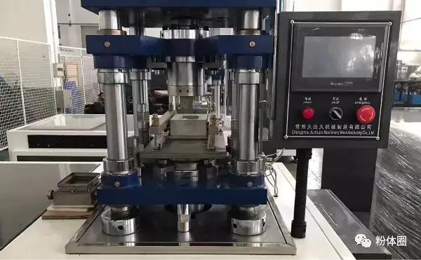 為干壓成型機。干壓成型(軸向壓制成型)是將經表面活性劑改性等預處理的 AlN 粉體加入至金屬模具中,緩慢施加壓力使其成為致密的坯體成型工藝。實質是借助外部施壓,依靠AlN粉末顆粒之間的相互作用力使坯體保持一定的形狀和致密度高致密坯體,其有利于陶瓷燒結,可以降低燒結溫度,提高陶瓷致密度。由于AlN粉末易水解,干壓成型中常用的水-聚乙烯醇(PVA)不能用于AlN粉末的壓制,可選用石蠟與有機溶劑代替。
