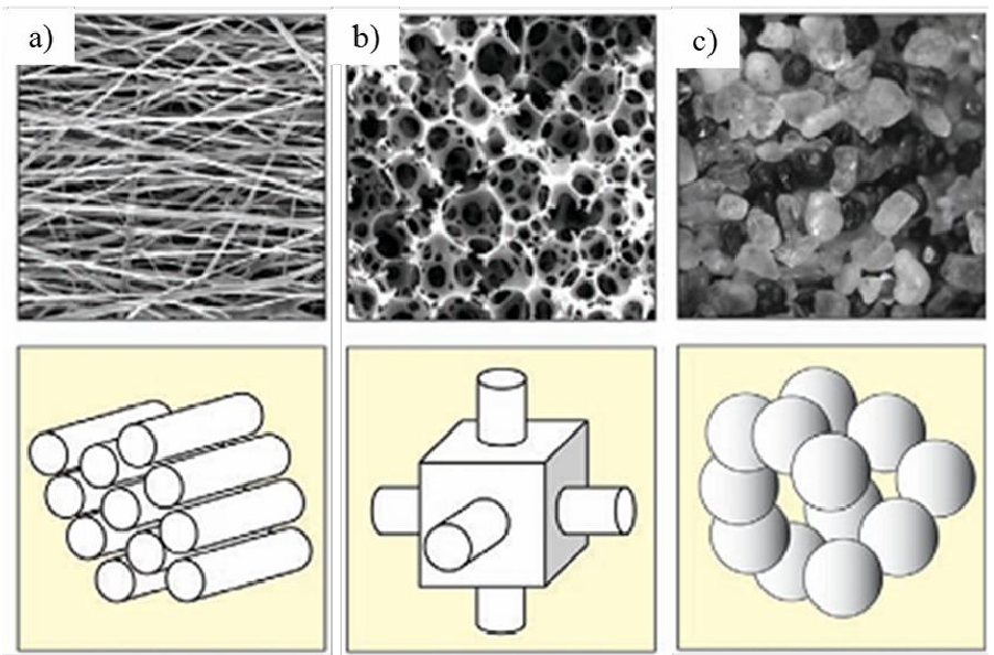 三種多孔吸聲材料結構示意圖